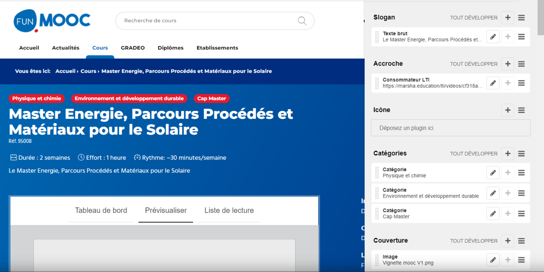 L’équipe pédagogique dispose d’une interface pour programmer les ouvertures de contenus, personnaliser l’affichage ou gérer les inscriptions.