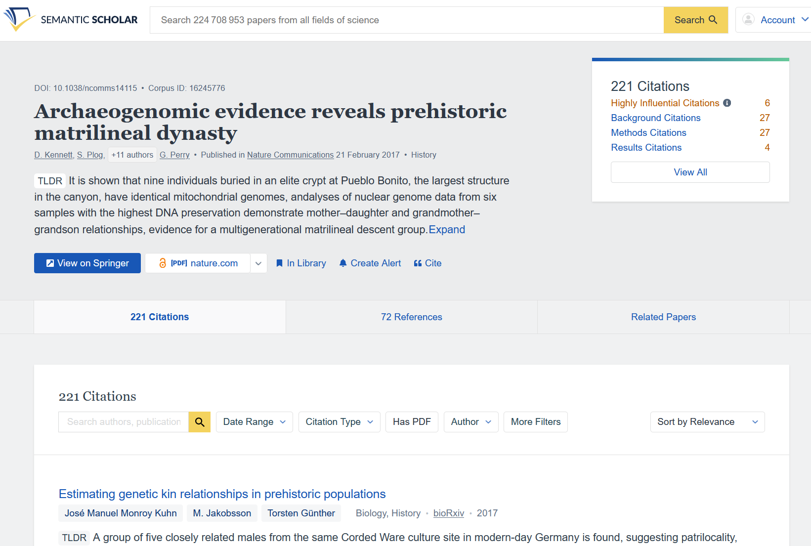 Les citations permettent de découvrir des articles en lien avec le sujet. Un clic sur "Related Papers", "References", un mot-clé ou le nom de l’auteur permet d’élargir la recherche.