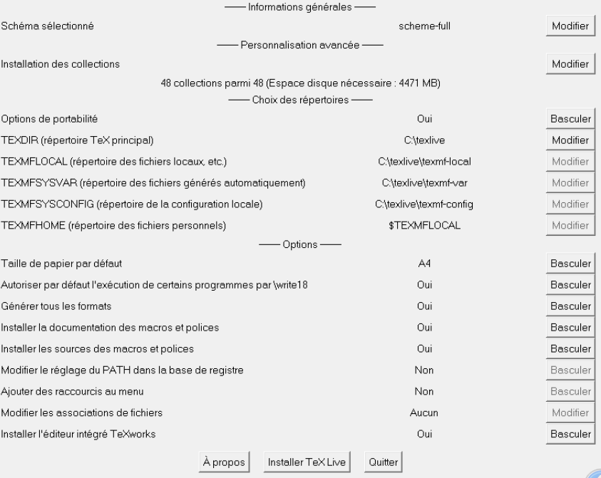 L’installation complète de TeX Live occupe plusieurs gigaoctets d’espace disque, mais des schémas d’installation allégés sont proposés. Une distribution moins volumineuse que TeX Live est MiKTeX.